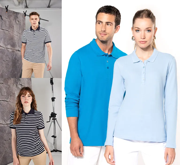 La plupart des polos que nous proposons se déclinent en coupe masculine et féminine. Il existe aussi toute une gamme enfants.